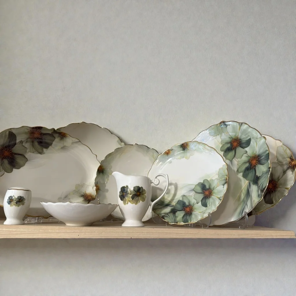 Bu 12 kişilik yemek takımı, estetik tasarımı ve zarif floral detaylarıyla sofralarınıza doğal bir şıklık katıyor. Her bir parçada yer alan yumuşak tonlardaki çiçek motifleri, altın yaldızlı kenar detaylarıyla birleşerek hem klasik hem de modern dekorasyon tarzlarına uyum sağlayan zarif bir görünüm sunar.