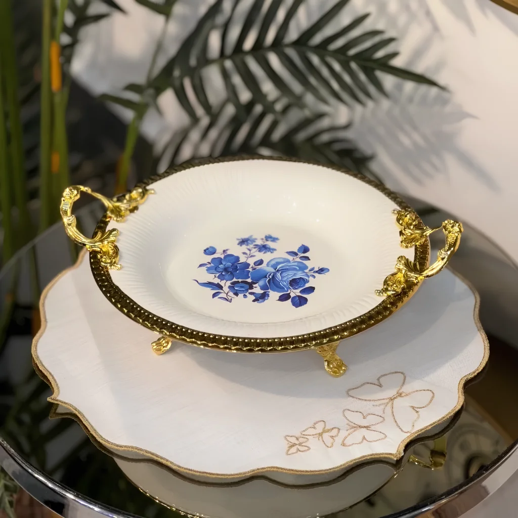 Şık ve zarif tasarımıyla öne çıkan bu porselen sunum tabağı, sofralarınıza lüks bir dokunuş katmak için özenle tasarlanmıştır.