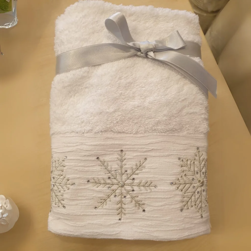 Kar Tanesi Nakışlı Yüz Havlusu 50x80 cm – Banyonuzda Kışın Zarafeti