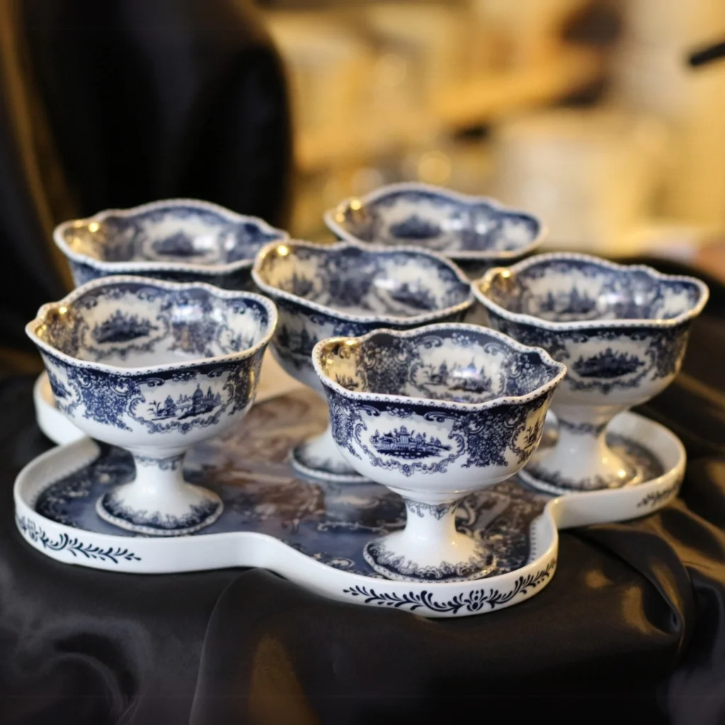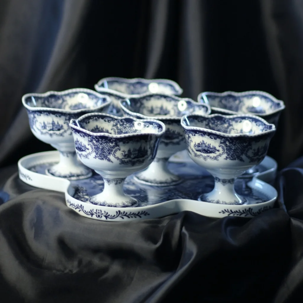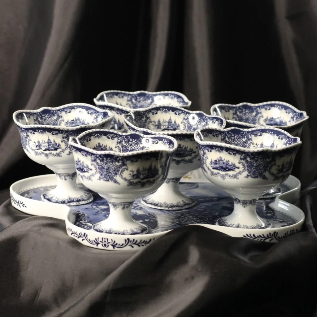 Klasik Desenli 6’lı Dondurmalık ve Tepsi Seti – Şık Sunum Takımı