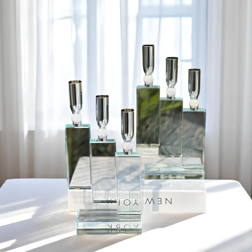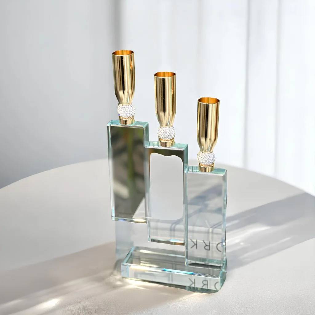 Kristal 3'lü Cam Şamdan Seti - Zarafet ve Işıltının Buluştuğu Anlar