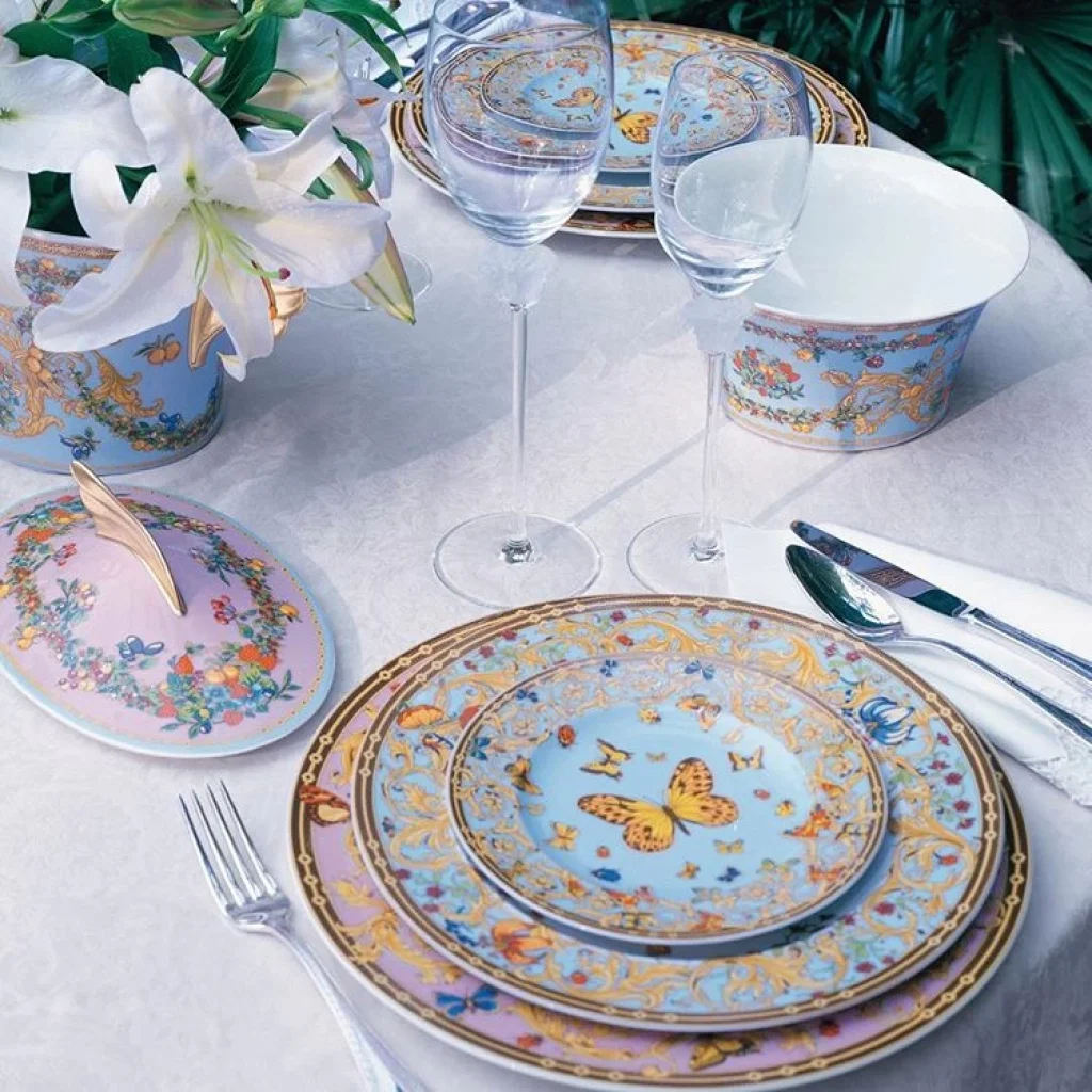 Eşsiz çiçeklerin dansı, festival neşesi ve narin kelebeklerin zarafetiyle tasarlanmış masalsı bir Versace bahçesine davet! Her detayında baharı ve lüksü yaşatan bu porselen set: