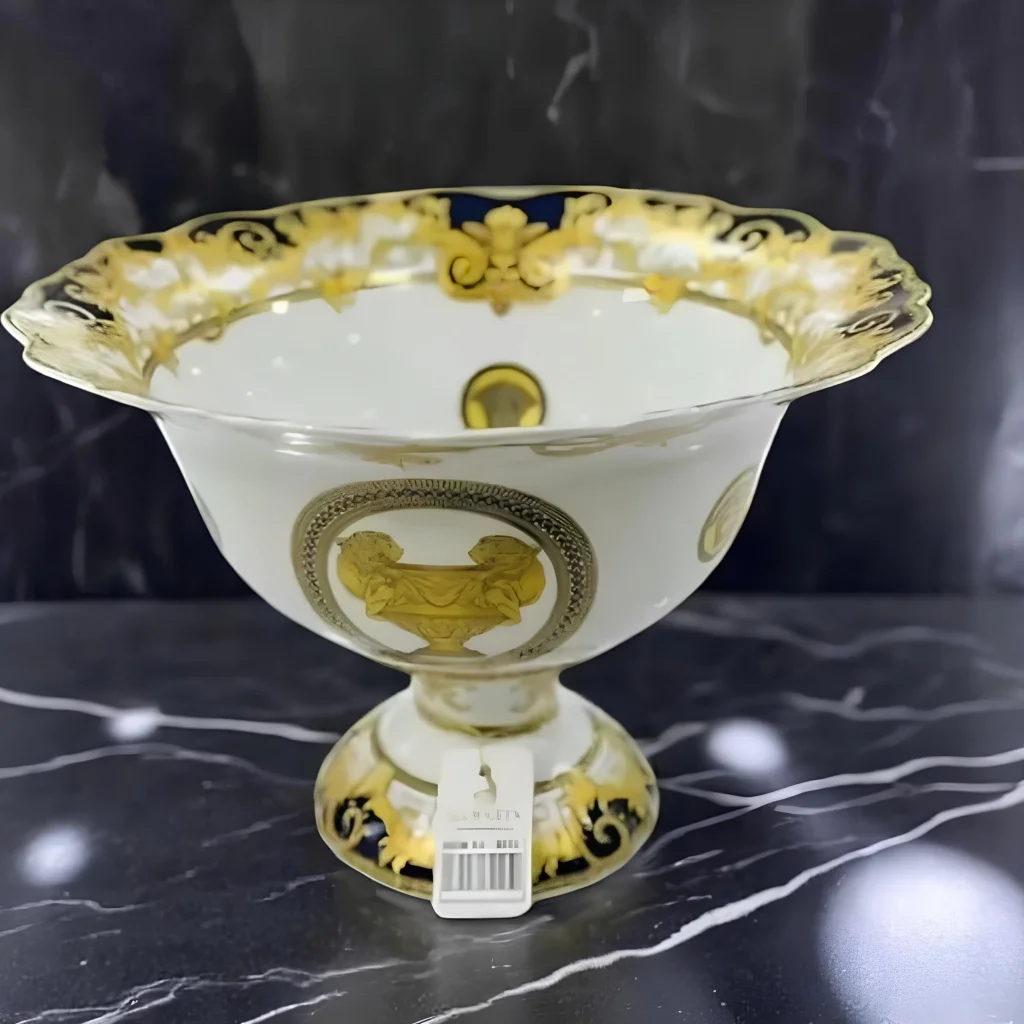 Bu Versace "I Love Baroque" ayaklı meyvelik ile sofralarınıza İtalyan lüksünün ve sanatının eşsiz dokunuşunu getirin. Her detayı özenle tasarlanmış bu özel parça, yemeklerinizi bir şölene dönüştürecek ve yaşam alanlarınıza sofistike bir zarafet katacaktır.